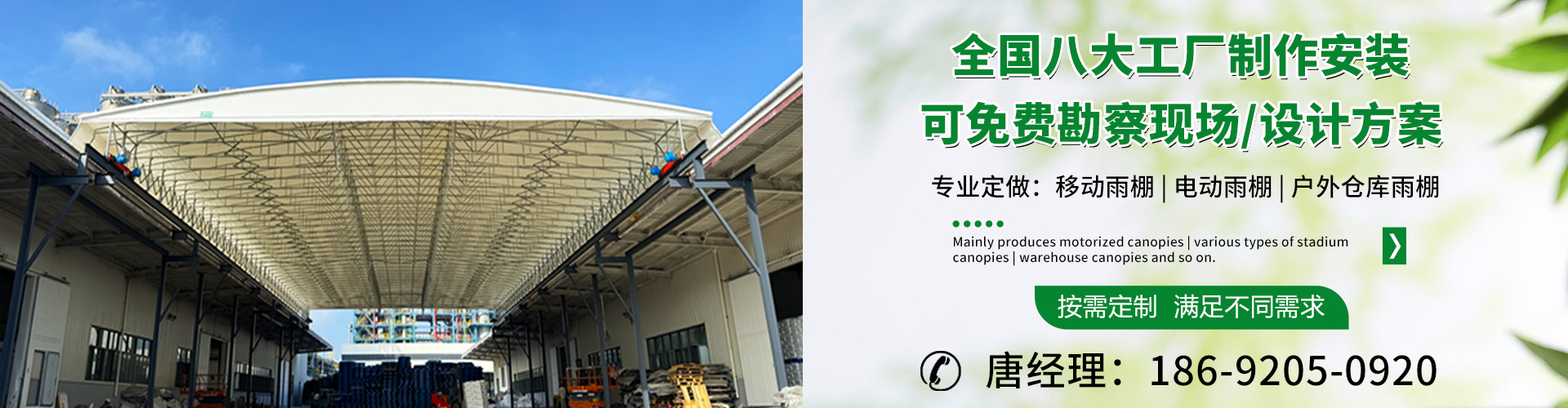 湖南鑫建華鋼結(jié)構(gòu)工程有限公司是一家電動(dòng)雨棚、膜結(jié)構(gòu)車棚研發(fā),生產(chǎn)銷售,施工安裝于一體的專業(yè)鋼結(jié)構(gòu)科技公司,主要產(chǎn)品有伸縮雨棚,電動(dòng)雨棚,膜結(jié)構(gòu)車棚等。 湖南地區(qū)職員目前有200多人,自建廠房15600平方米,配備先進(jìn)的生產(chǎn)流水線,使每件品質(zhì)產(chǎn)品的堅(jiān)實(shí)基礎(chǔ)?! 」驹诤怅?yáng),蘇州,天津,濟(jì)南,鄭州,江門,佛山,武漢,重慶均設(shè)有服務(wù)工廠,擁有專業(yè)的技術(shù)團(tuán)隊(duì),配備先進(jìn)的設(shè)備和流水線生產(chǎn),產(chǎn)能高,貨源充足,發(fā)貨速度快,服務(wù)區(qū)域廣。 移動(dòng)伸縮棚適用于通道臨時(shí)倉(cāng)儲(chǔ)、戶外運(yùn)動(dòng)遮陽(yáng)、污水池遮蓋、能源交通、熱力化工、礦山、船舶制造及市政建設(shè)、物流、碼頭等領(lǐng)域的構(gòu)件制作加工,成品半成品存放、倉(cāng)庫(kù)、野外儀器設(shè)備操作用房等。尤其是對(duì)工廠發(fā)貨、倉(cāng)儲(chǔ)臨時(shí)遮雨防嗮,梅雨期較長(zhǎng)、建設(shè)周期較短的工程施工等特別適用。還可根據(jù)用戶需求量身定制、適合企業(yè)所需不同款式的產(chǎn)品。 我公司堅(jiān)持“誠(chéng)信社會(huì)為本,客戶滿意為榮”的經(jīng)營(yíng)理念,做到質(zhì)量把控,嚴(yán)格管理,精益求精,恪守承諾。使鑫建華逐步走向成熟,其系統(tǒng)化、專業(yè)化日趨完善。以專業(yè)的技術(shù)、科學(xué)的管理,更高的產(chǎn)品質(zhì)量,優(yōu)良的企業(yè)信譽(yù),真誠(chéng)的客戶服務(wù),靈活多樣的經(jīng)營(yíng)方式和務(wù)實(shí)創(chuàng)新的企業(yè)精神愿與社會(huì)各界攜手合作,為推動(dòng)智能鋼結(jié)構(gòu)建筑事業(yè)的發(fā)展而不斷努力。...